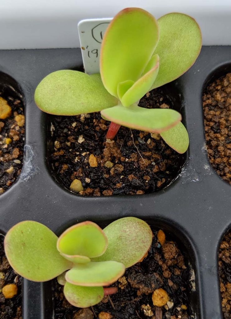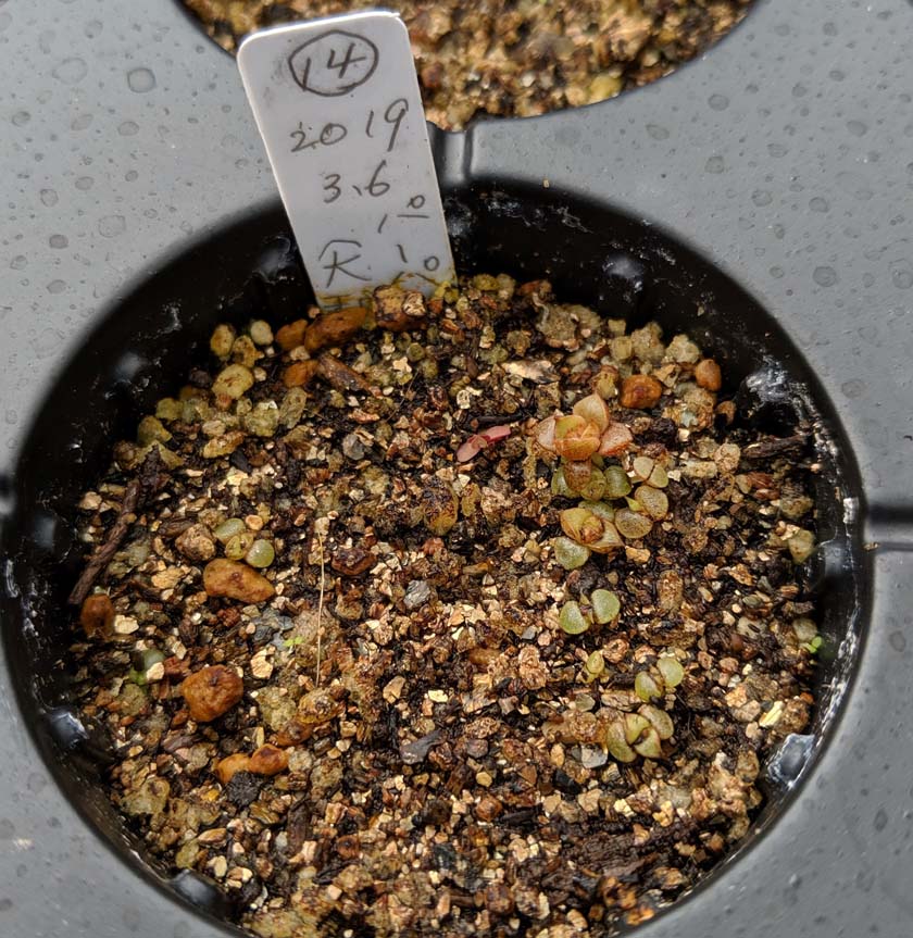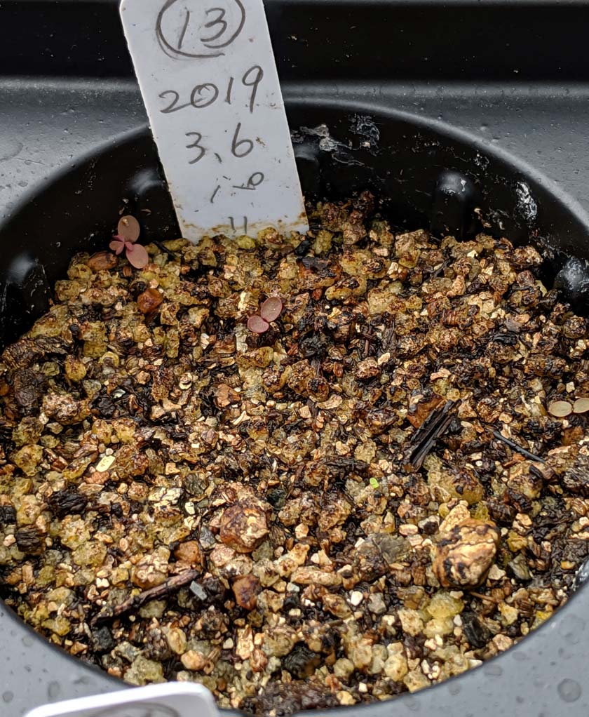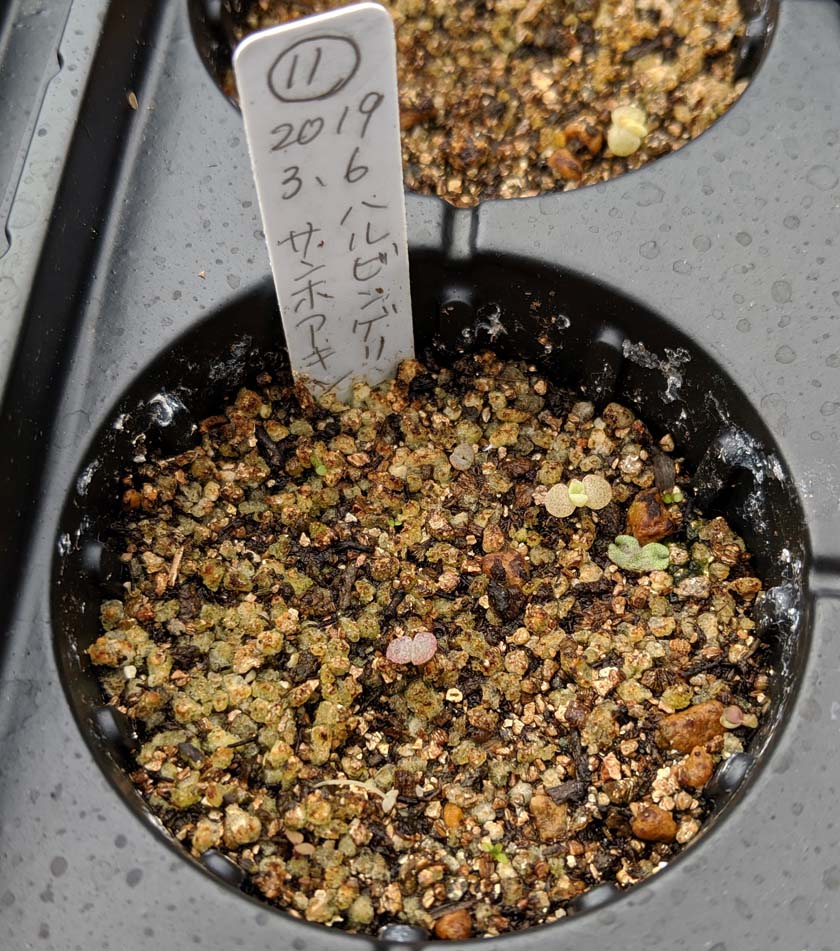 種をまいたほうの苗はまだまだ小さいけど、植え替えたものは順調に大きくなっています。こんなに差がでる?と思ったけど、実生の記録1を見返してみると、発芽したのが2つだけ早かったのよね。だからなのかもしれない。